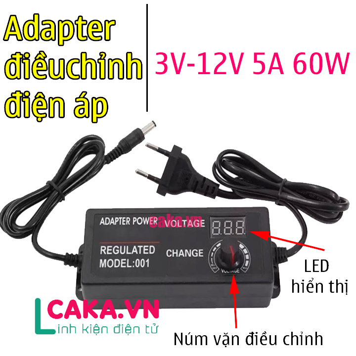 Nguồn Adapter điều chỉnh điện áp 3-12V 5A