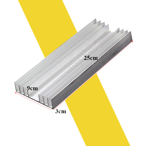 Nhôm tản nhiệt 8 cánh 250x90x30mm là mẫu heatsink lớn, thường dùng trong các mạch điện công suất cao như mạch nguồn xung, biến tần, ampli công suất, thiết bị điều khiển động cơ. Với chiều dài lên đến 25cm, thiết kế nhiều rãnh tản nhiệt và nhôm nguyên khối, sản phẩm giúp tản nhiệt cực kỳ hiệu quả, hạn chế quá nhiệt cho các linh kiện công suất lớn.