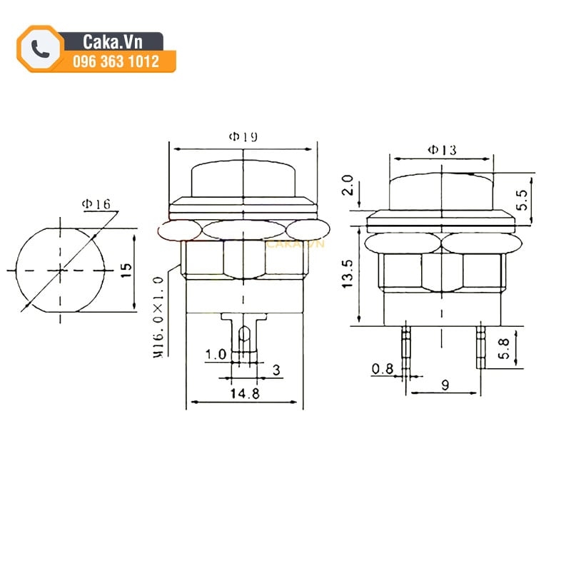 • Kích thước lỗ lắp: Ø16mm (chuẩn panel)