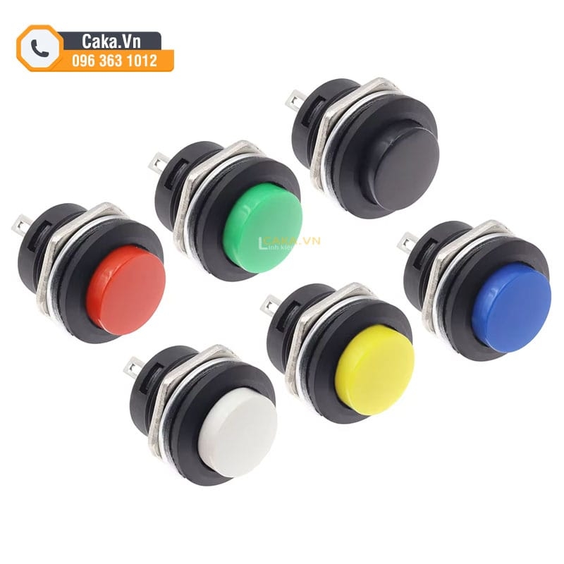 Nút nhấn nhả R13-507 loại 2 chân 250V 3A, dạng tròn nhỏ gọn, gắn lỗ 16mm, dùng làm nút reset, điều khiển mạch DIY.