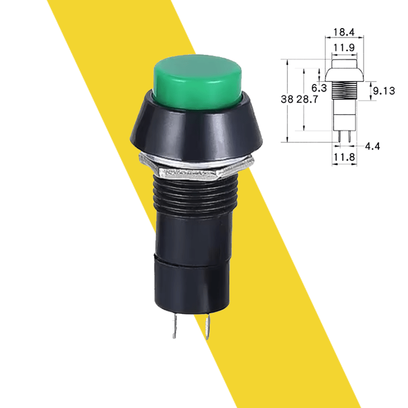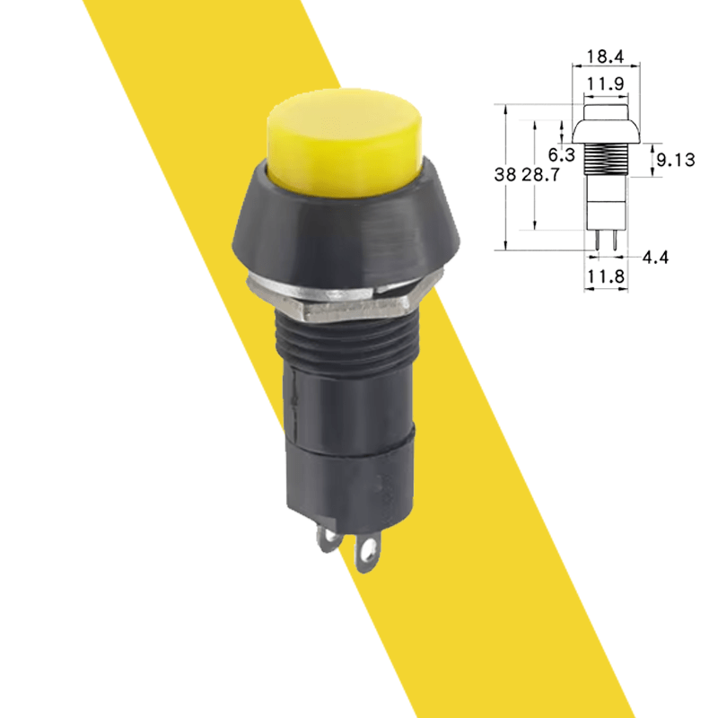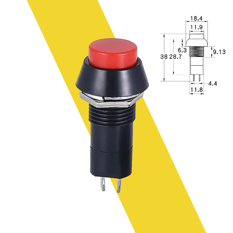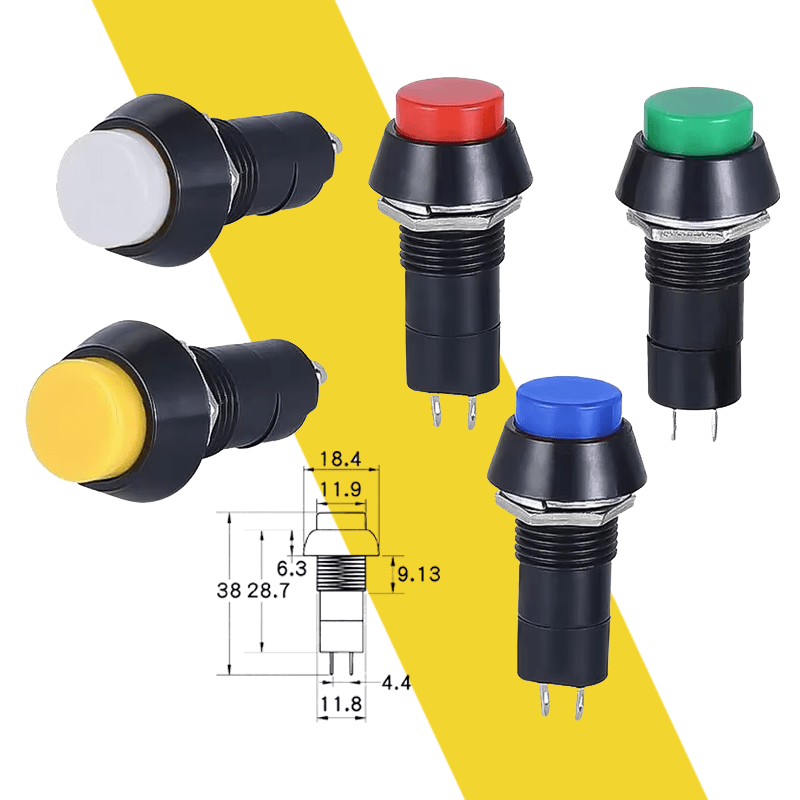 Nút nhấn PBS-11 kích thước lỗ lắp đặt 12mm trang bị thêm long đèn chống rơ, nút nhấn PBS-11 được sử dụng rộng rãi trong các ứng dụng điện tử dân dụng công nghiệp.