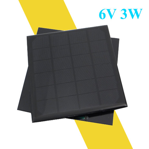 Pin Năng lượng mặt trời Solar Panel 6V 3W có kích thước nhỏ gọn được sử dụng cho nhiều mục đích khác nhau: cung cấp năng lượng cho các cảm biến, mạch xử lý, sạc pin,..., pin có độ bền cao, chất lượng gia công tốt, cách sử dụng dễ dàng.