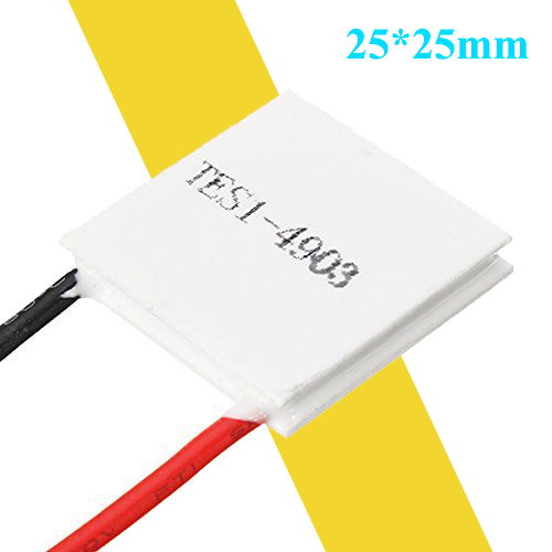 Sò nóng lạnh TES1-4903 25x25mm 6V 2A hay chip peltier là cấu kiện bán dẫn có tính chất làm lạnh một mặt mặt còn lại được làm nóng .Nói rõ hơn là miếng bán dẫn nhỏ, công suất mạnh giúp hút nhiệt mặt có chữ kí hiệu phía trên và thải qua bề mặt bên kia => lượng nhiệt năng ở bề mặt bên kia sẽ bằng tổng nhiệt năng hút từ bề mặt có chữ và lượng nhiệt năng chuyển từ điện năng mà ta đặt vào 2 đầu dây của miếng bán dẫn này.